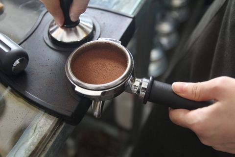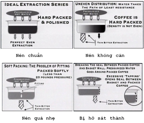 *Khi nén phải cân (even) và không được nén đi nén lại nhiều lần, vì sẽ làm Espresso bị Over.