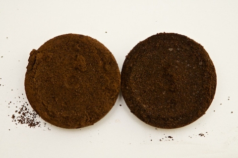 + Lấy bã cà phê ra khỏi tay pha: Bã cà phê khi chiết xuất đúng sẽ có hình dạng bánh cookie.