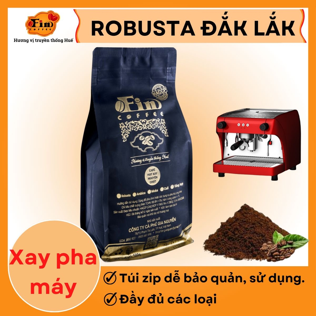 Cà phê rang xay được chọn lọc từ những hạt cà phê ngon nhất của vùng đất đỏ bazan Tây Nguyên, A Lưới- Huế, Khe Sanh- Quảng Trị và Moka Cầu Đất. Với bí quyết rang xay cổ truyền kết hợp với bàn tay người thợ lành nghề xứ Huế, Fin Coffee đã lưu giữ và tạo nên hương vị cà phê nồng nàn, ngây ngất.