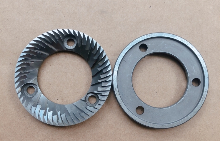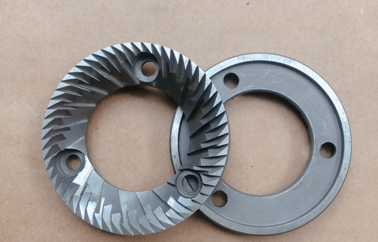 • Khi xay 2 đĩa ma sát vào nhau nghiền nát hạt cà phê, tùy theo độ điều chỉnh mà thô hay mịn khác nhau. Đĩa còn mới khi xay cà phê sẽ tuôn ra, còn khi đĩa mòn thì khi xay cà phê sẽ tuồn ra.