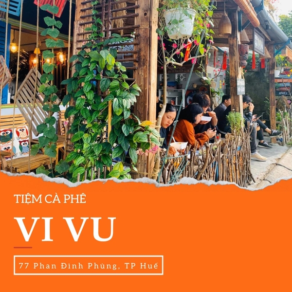 Kế đến, bạn sẽ tìm thấy tại số 77 Phan Đình Phùng, nằm nép bên dòng sông An Cựu là Tiệm Cà phê ViVu. Tuy với không gian không lớn lắm, nhưng ViVu lại là nơi chứa đựng trong mình những góc nhỏ vô cùng xinh xắn, đáng yêu và mang dáng dấp hoài cổ.
